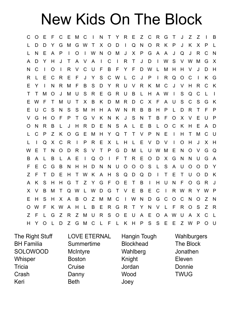 New Kids On The Block Word Search WordMintNew Kids On The Block Word Search WordMint