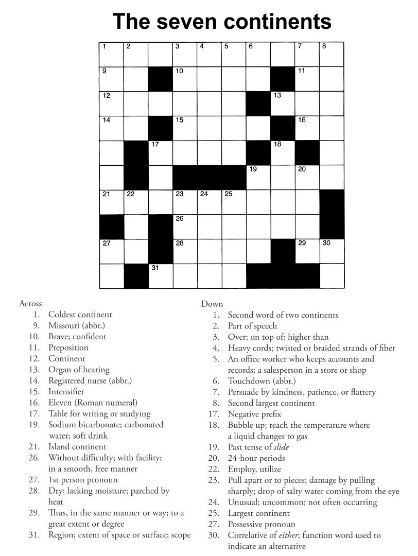 Crossword Puzzles Free Online Printable Crossword Puzzles