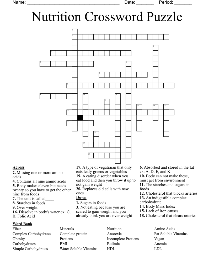 Are you looking for a fun and interactive way to test your knowledge of nutrition? Look no further! The Nutrition Crossword Must See is a great way to challenge yourself while learning more about the importance of a healthy diet. Whether you are a nutrition enthusiast or just starting to learn about the topic, this crossword puzzle is sure to entertain and educate you.