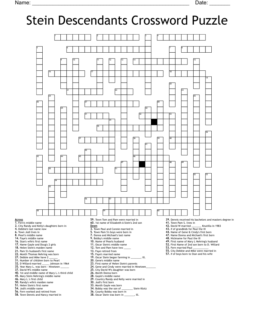 Stein Descendants Crossword Puzzle WordMintStein Descendants Crossword Puzzle WordMint